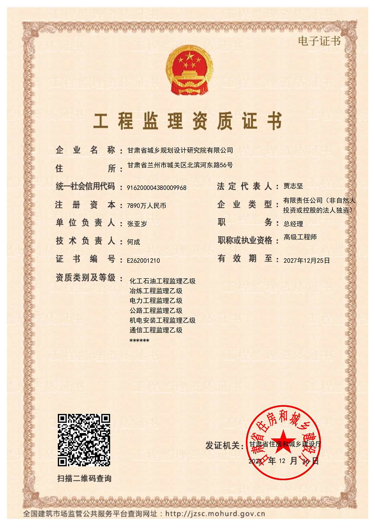 工程监理资质证书