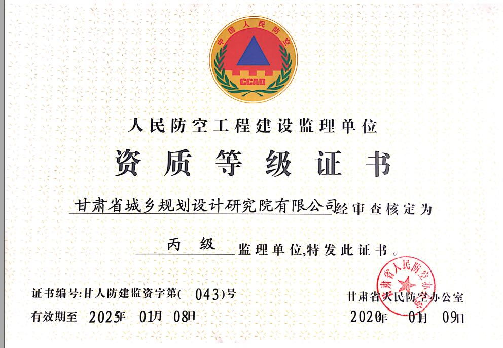 人民防空工程建设监理单位资质等级证书丙级