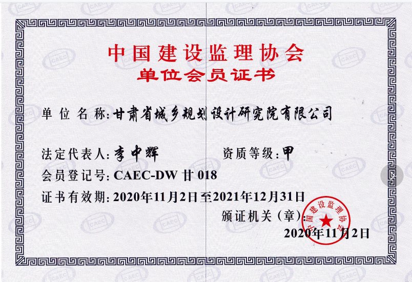中国建设监理协会单位会员证书甲级