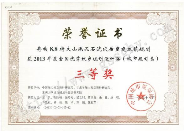 舟曲8.8特大山洪泥石流灾后重建城镇规划全国三等奖