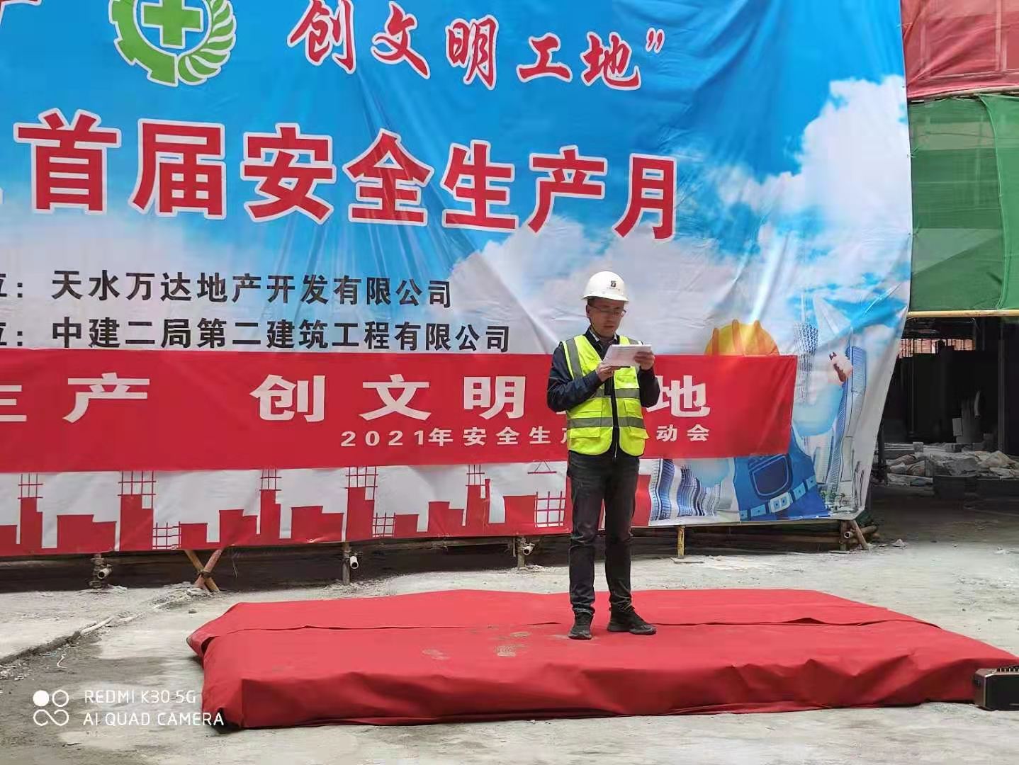 天水万达广场项目为我公司监理二分院2019年8月1日中标项目,总建筑面积约32.9万平方米。自承接该项目以来,监理二分院始终将项目安全放在首位,守正笃实、持之以恒,不断筑牢项目安全生产防线。节后恢复施工是项目生产的重要时期,也是安全事故的高发期。为杜绝节后大量施工人员进入施工现场带来的安全隐患问题,天水万达广场项目部在做好疫情防控的前提下,组织开展了“安全生产月”活动。