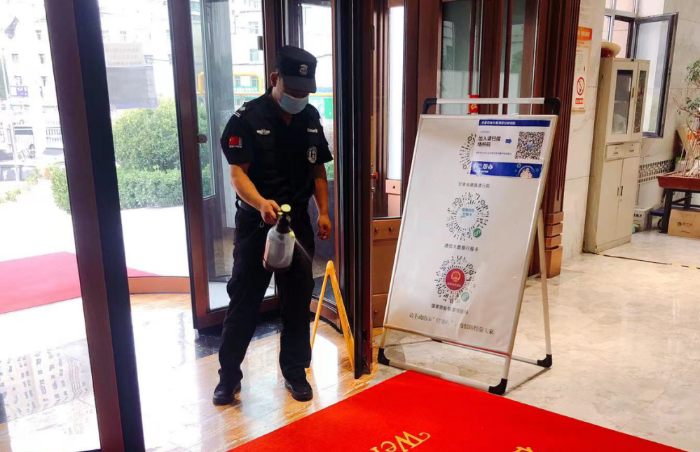 把好“消杀关”。自疫情发生以来,后勤服务中心将保障疫情防控的物业和后勤工作人员集中到公司闭环管理,严格落实全员核酸检测要求,时刻为复工复产做好准备。在收到集团公司关于做好复工复产的通知后,后勤服务中心第一时间召开线上会议,对办公楼全面消杀工作进行部署。建立了清洁消毒日记录的工作机制,每日对办公楼公共区域、电梯轿厢(按键)、门把手、卫生间等重点区域进行三次清洁,并使用 75度医用酒精喷洒、擦拭,实现了360度无死角的消毒消杀。