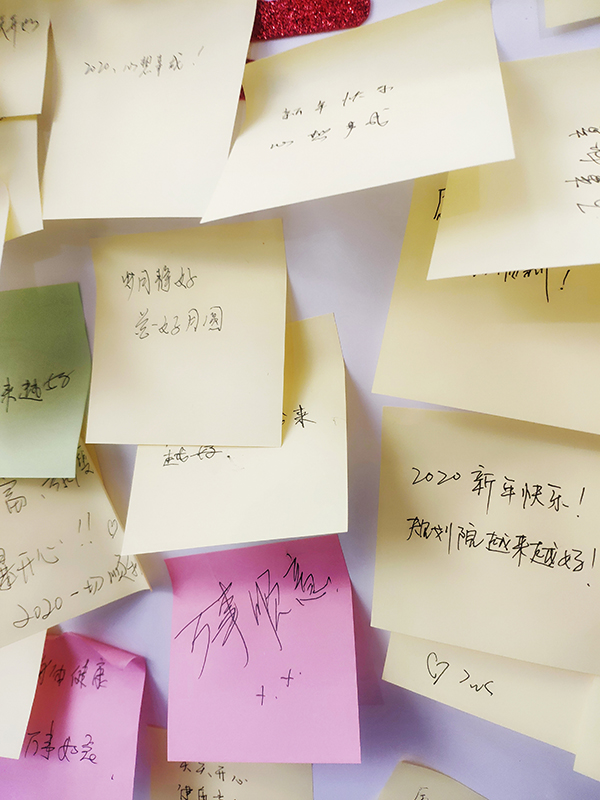 在写新年寄语环节,职工们对新一年公司发展寄予了美好的憧憬和祝愿,也为自己定好了2020年的目标。集齐的字卡,催人奋进,2020年注定是昂首阔步的一年。
