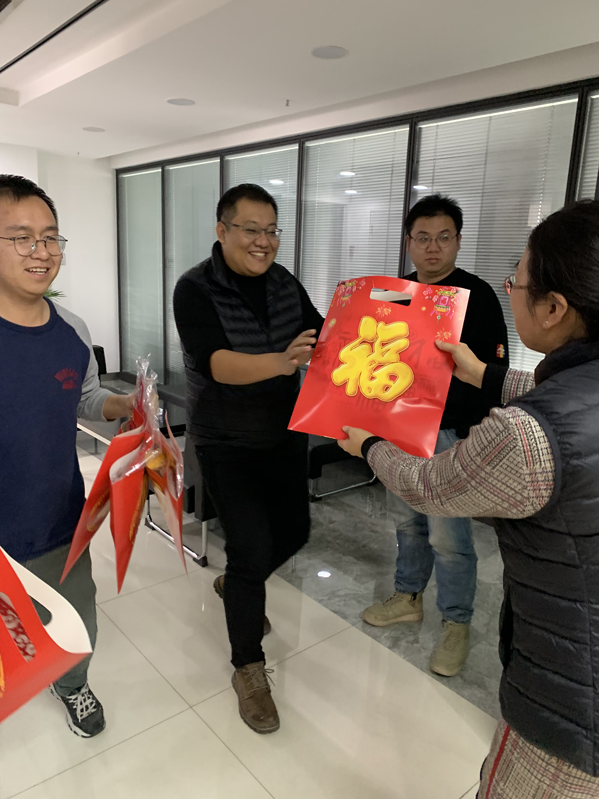 公司工会将装有福字、对联、红包的福袋送到每位职工的手上,让他们感受到公司的温暖和关爱,对全体职工辛勤工作表示感谢。
