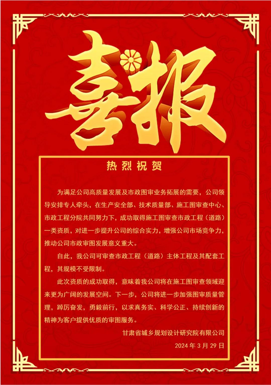 热烈祝贺公司取得施工图审查市政工程(道路)一类资质