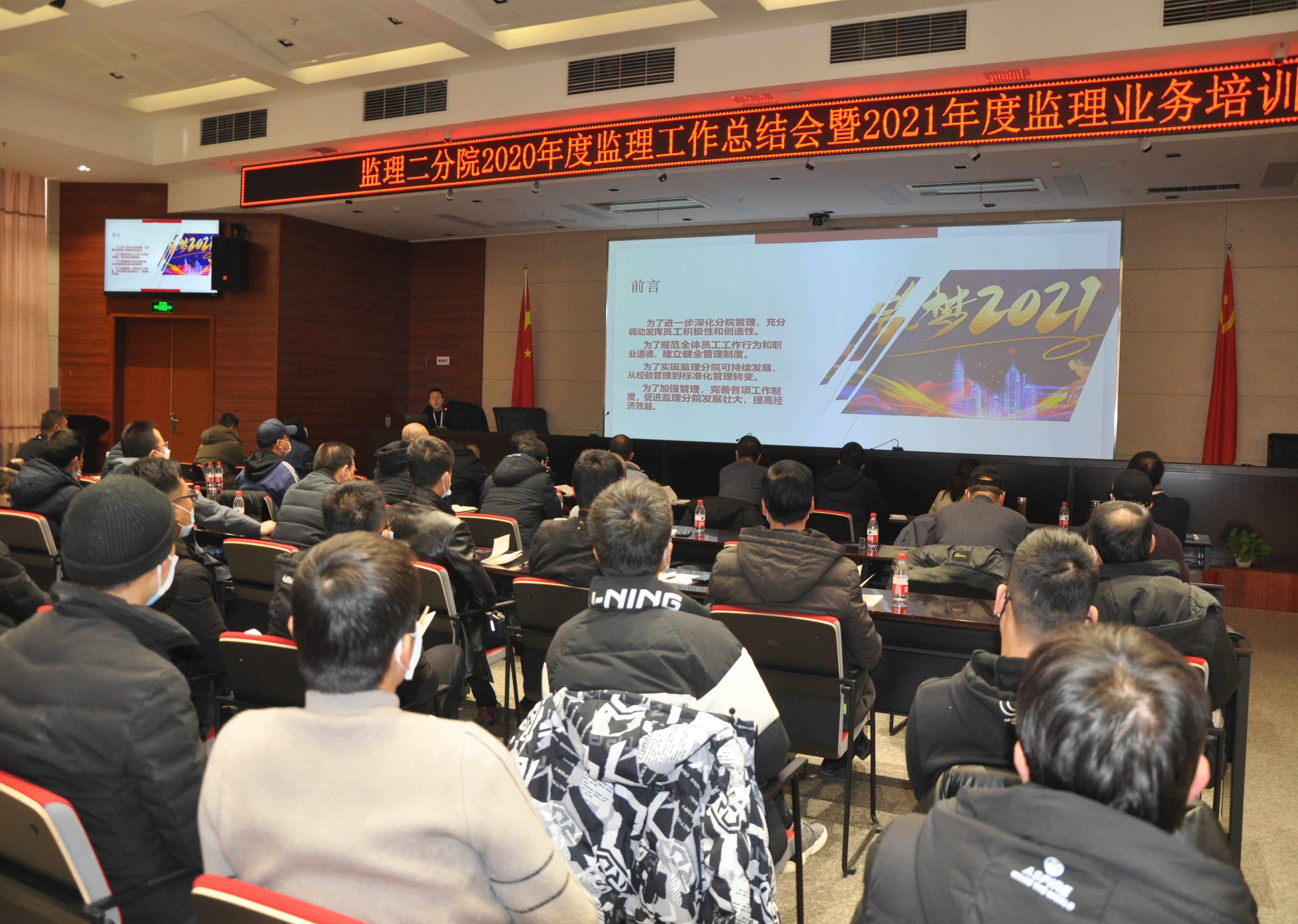 1月23日—24日,监理二分院在公司5楼会议室召开2020年度监理工作总结会暨2021年度监理业务培训会。监理二分院院长左玲、副院长张青峰、总工吴瑞兵以及83位员工参加了此次会议。
